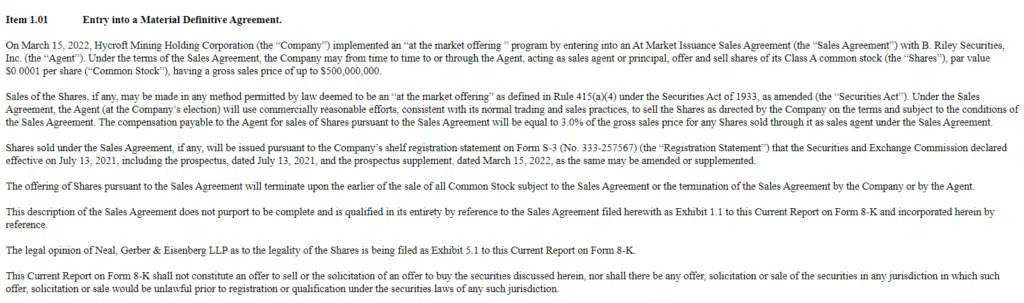 Hycroft: meme fumes. Hycroft is a deSPAC which closed back in May-2020 from a SPAC sponsored by Mudrick Capital. After hitting a peak of ~$15 in August 2020, HYMC stock has sunk steadily downward, trading at ~$0.30 before today’s announcement. Mudrick moved on to Mudrick Capital Acquisition II (MUDS), which was set to merge with baseball card and collectible company Topps before that deal fell apart last summer. According to AMC, the Hycroft Mine has about 15 million ounces of gold deposits and some 600 million ounces of silver deposit. Notably, HYMC is doing its own at-the-market-offering to capitalize on the stock pop.