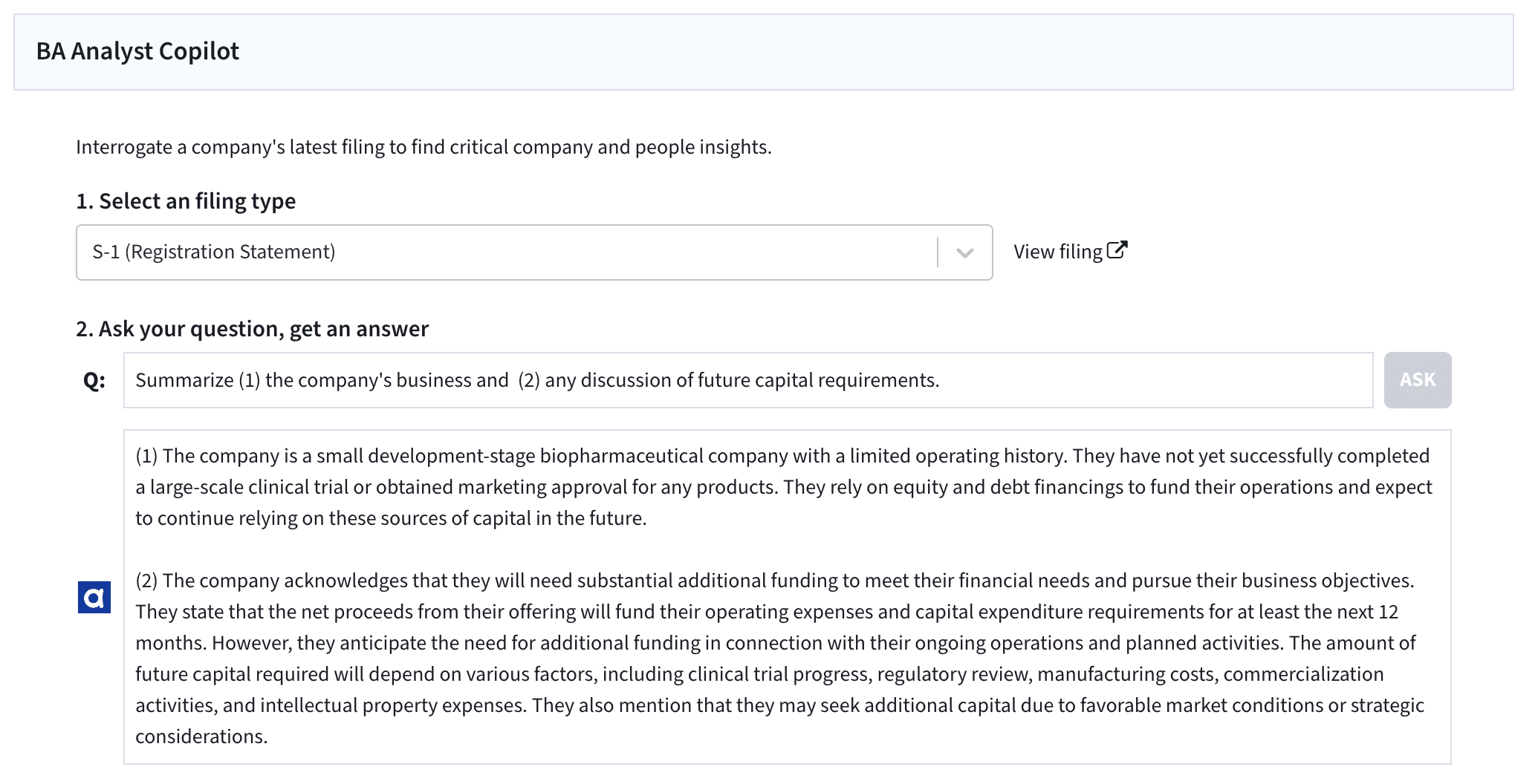 Example: Analyst Copilot on a Pre-IPO company’s S-1 SEC filing